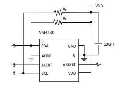 NSHT30通過CMOS—MEMS工藝的深度融合,將濕度傳感單元、溫度傳感單元與信號處理ASIC(含14位ADC、濾波控制器、OTP存儲)集成于單芯片,避免分立器件的信號干擾與裝配誤差;同時(shí)省去復(fù)雜的外部信號調(diào)理電路,簡化系統(tǒng)設(shè)計(jì),降低研發(fā)周期與生產(chǎn)成本。